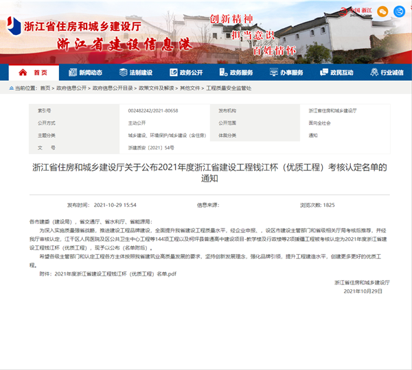 根據(jù)《浙江省住房和城鄉(xiāng)建設(shè)廳關(guān)于公布2021年度浙江省建設(shè)工程錢江杯(優(yōu)質(zhì)工程)考核認(rèn)定名單的通知》,我公司承建的景寧畬族自治縣鳳凰學(xué)校新建工程、麗水二中校園完整工程2個項目榮獲2021年度浙江省建設(shè)工程錢江杯(優(yōu)質(zhì)工程)。錢江杯(優(yōu)質(zhì)工程)是浙江省工程建設(shè)領(lǐng)域的最高質(zhì)量獎項,代表了浙江省建筑業(yè)工程質(zhì)量的最高水平。