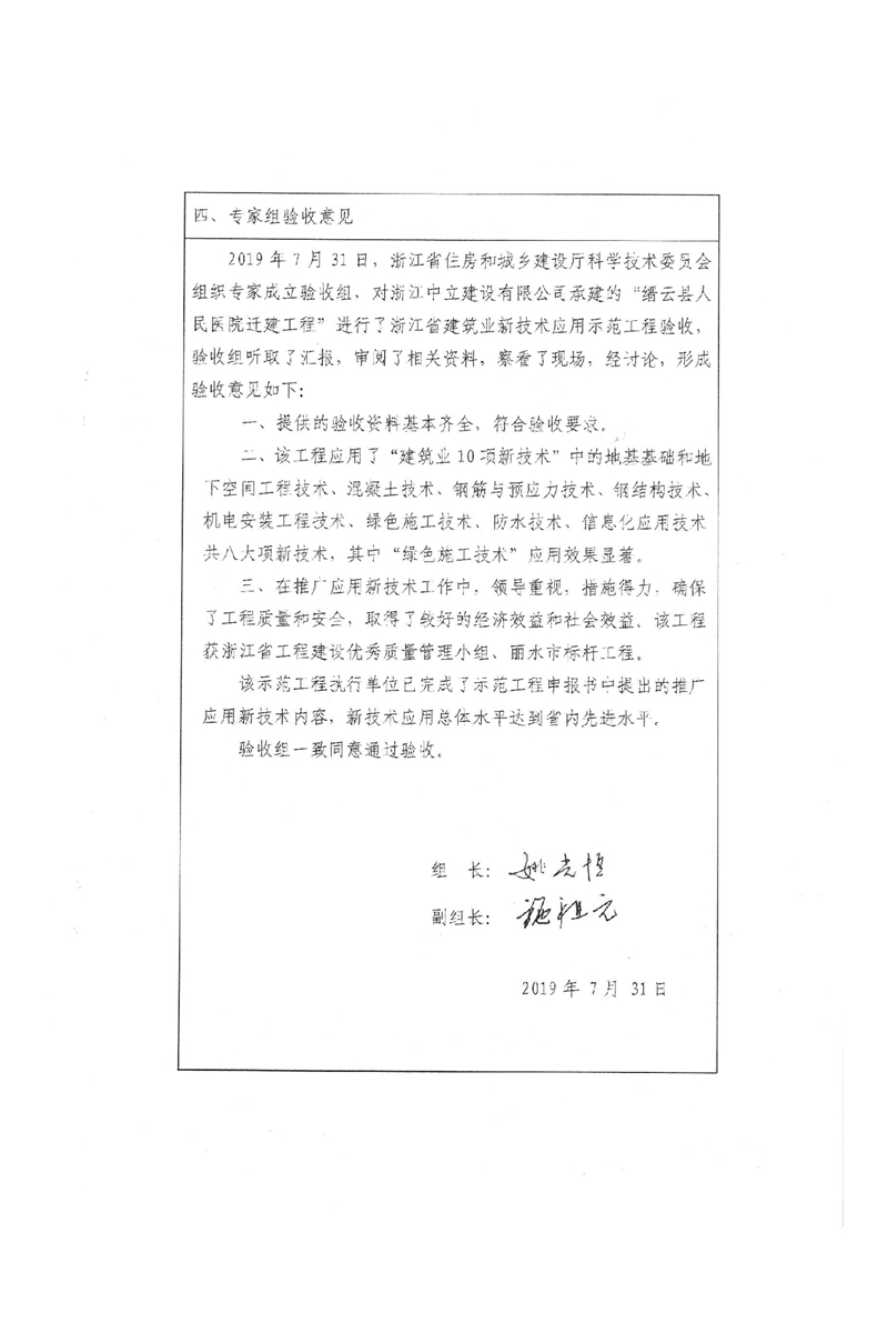 縉云縣人民醫院遷建工程榮獲 浙江省建筑業新技術應用示范工程